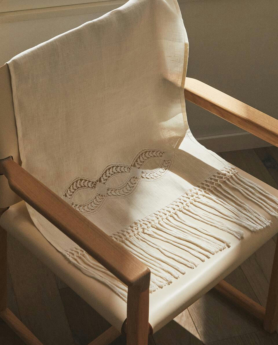 LINEN AND CAMARI?AS LACE TOWEL WITH FRINGING