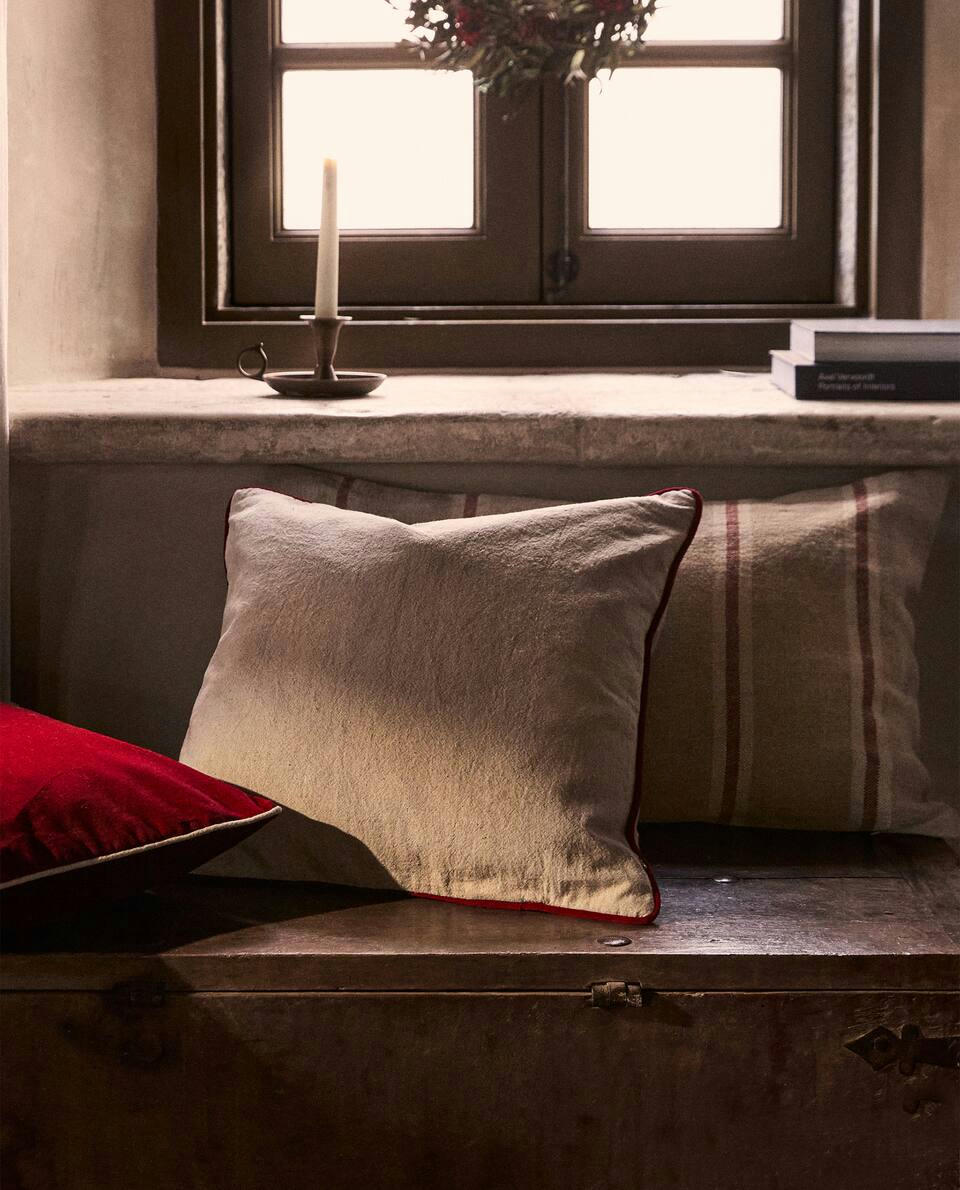 CUSHION COVER COTTON LINEN CHRISTMAS PIPING
