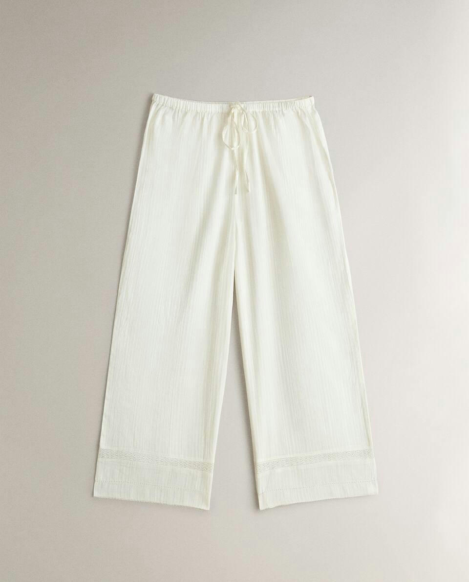 CROPPED TROUSERS WITH LACE TRIM
