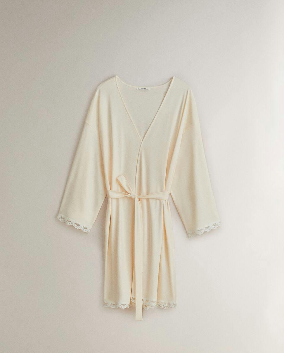 COTTON DRESSING GOWN WITH LACE TRIM