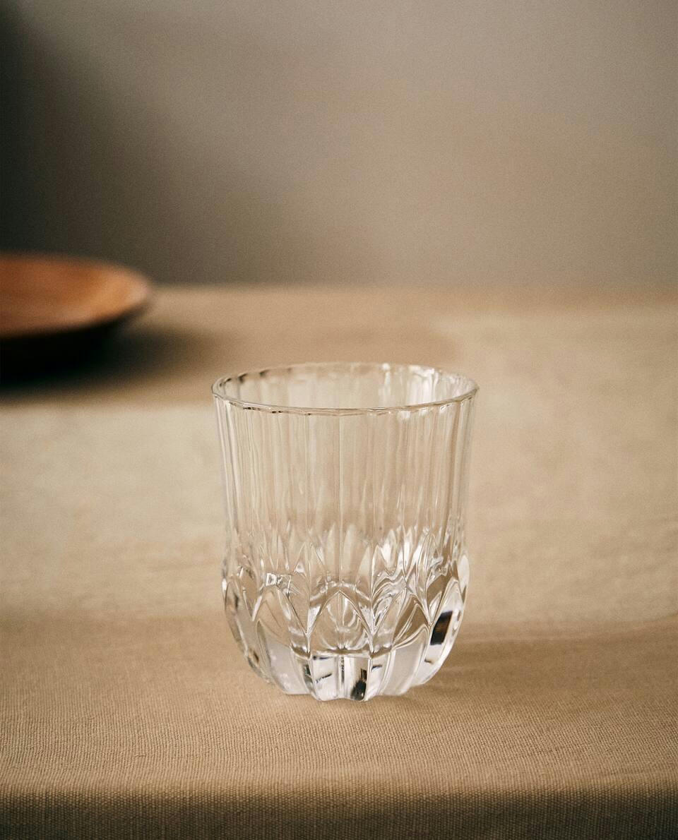 GLASS TUMBLER WITH RAISED DESIGN