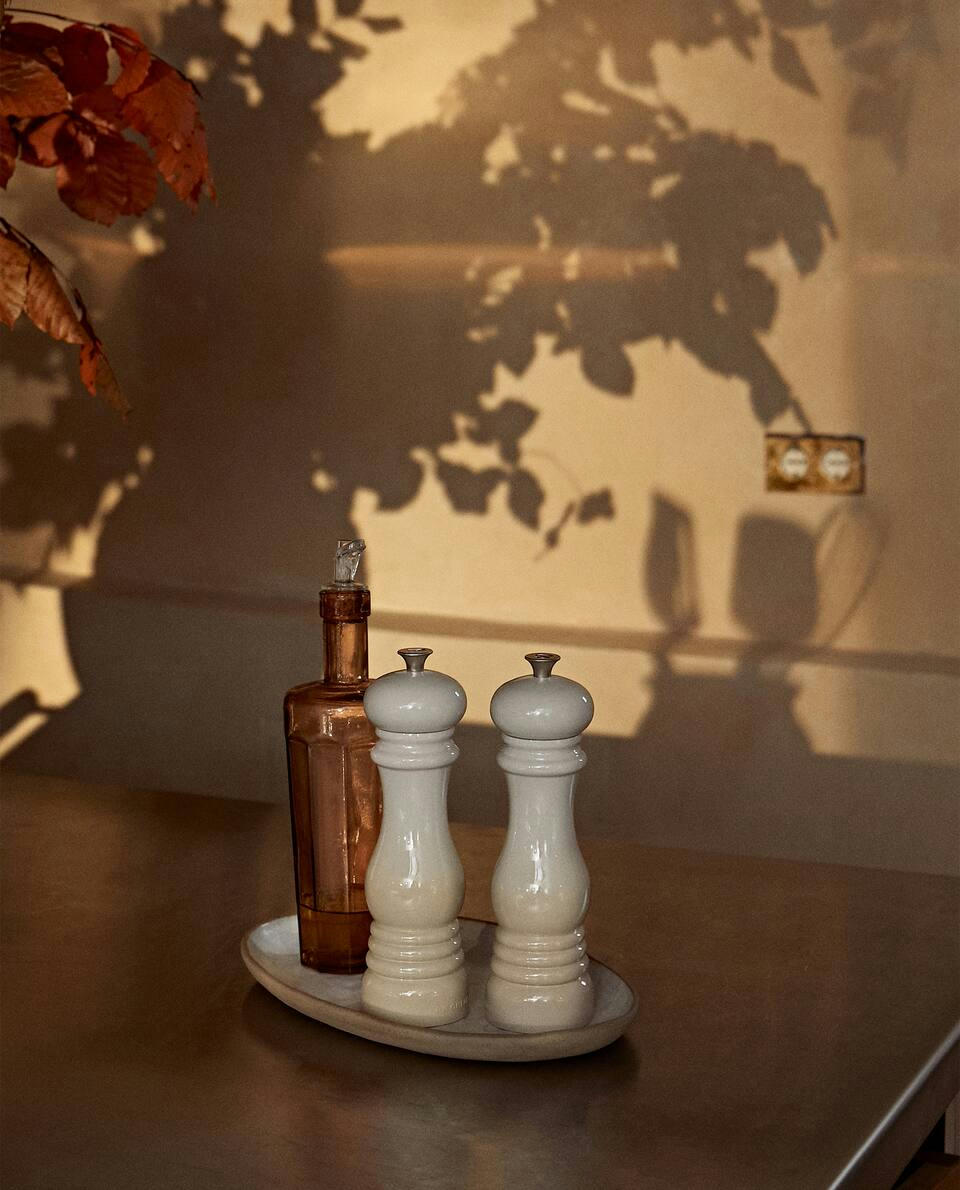 STONEWARE SALT AND PEPPER SET WITH RIM DETAIL