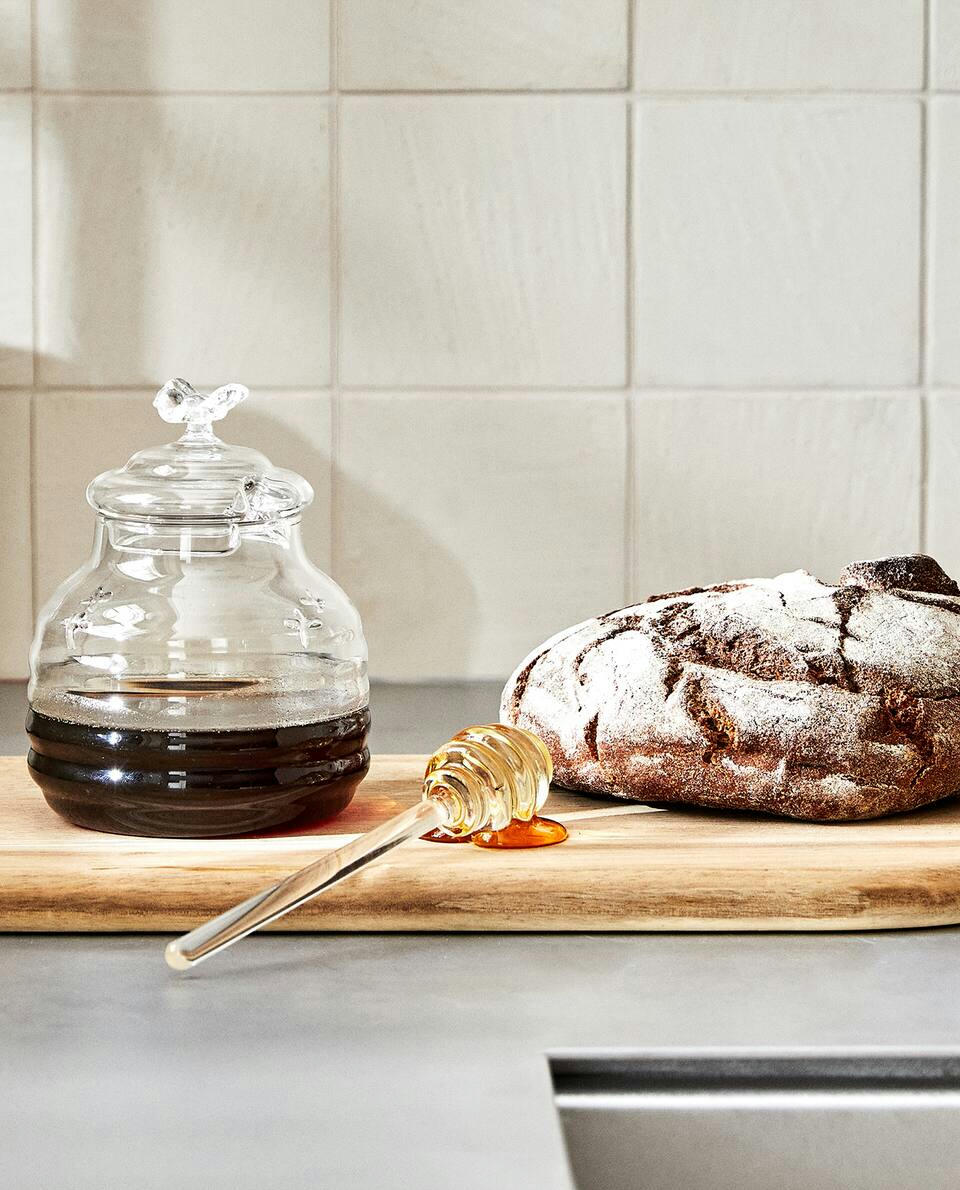 BOROSILICATE GLASS AND WOODEN HONEY JAR