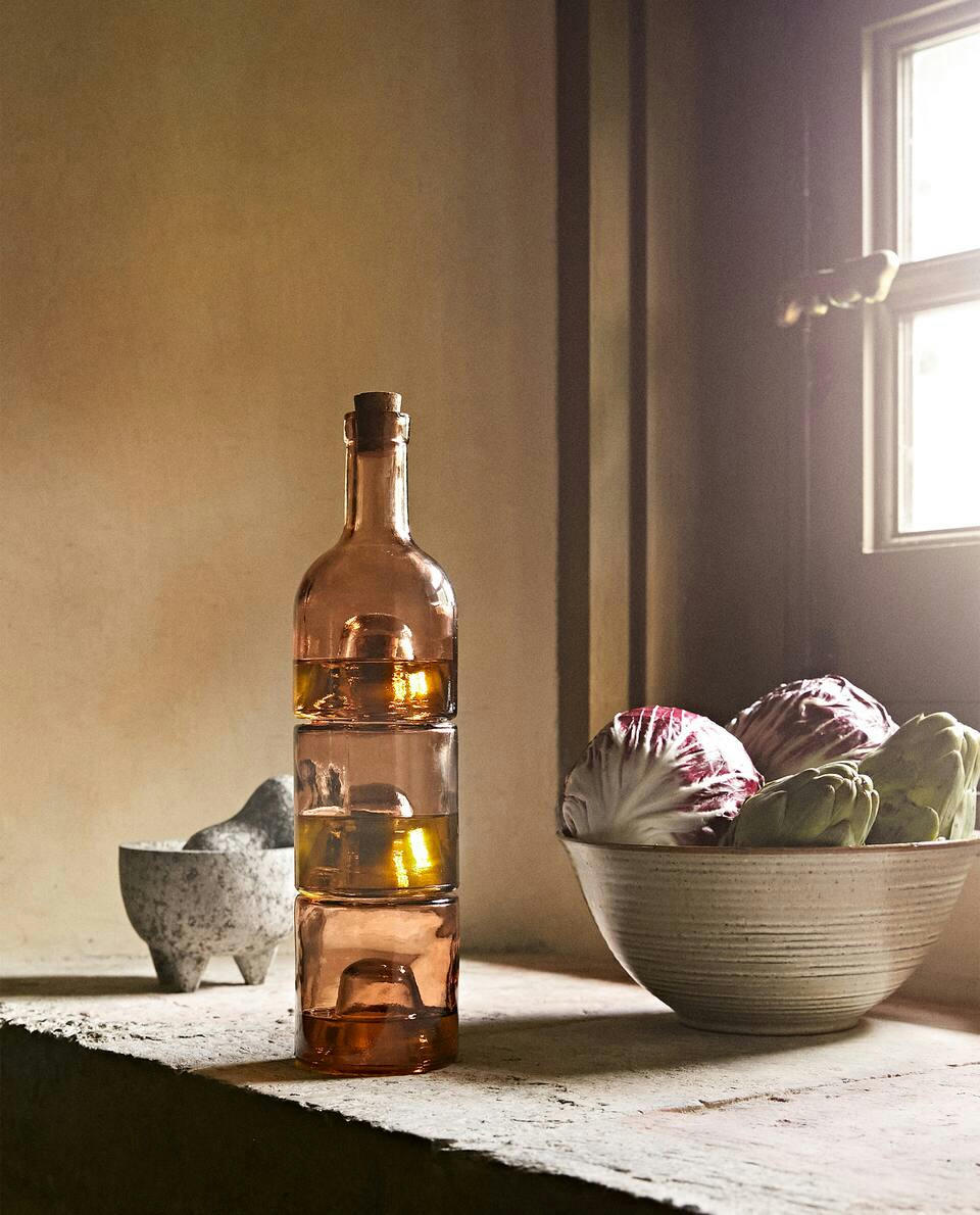 BOSOSILICATE GLASS AND WOOD CRUET SET