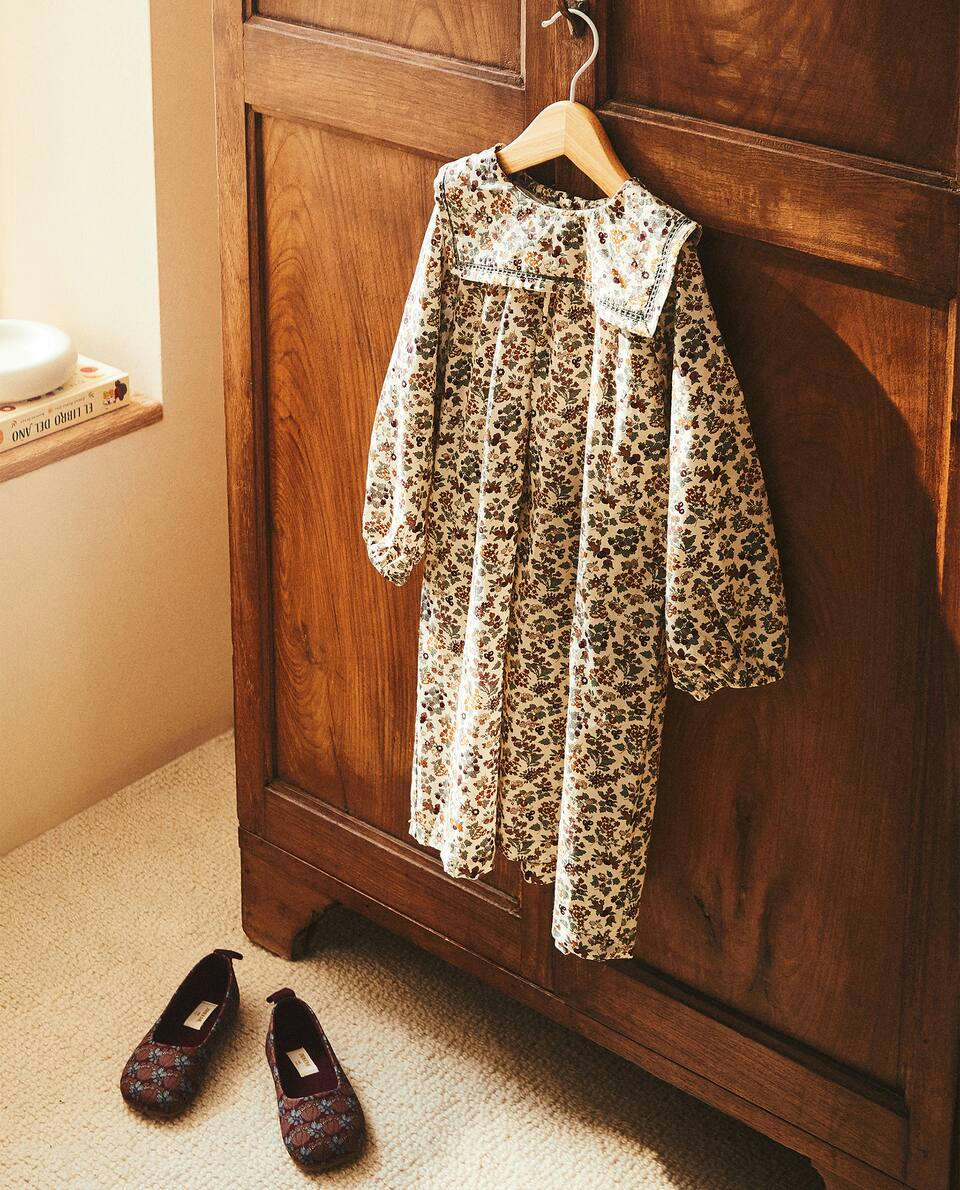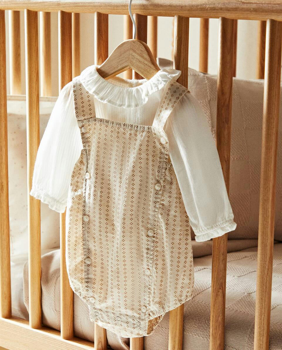 FLORAL PRINT FABRIC CHILDREN'S ROMPER SUIT WITH COLLAR DETAIL