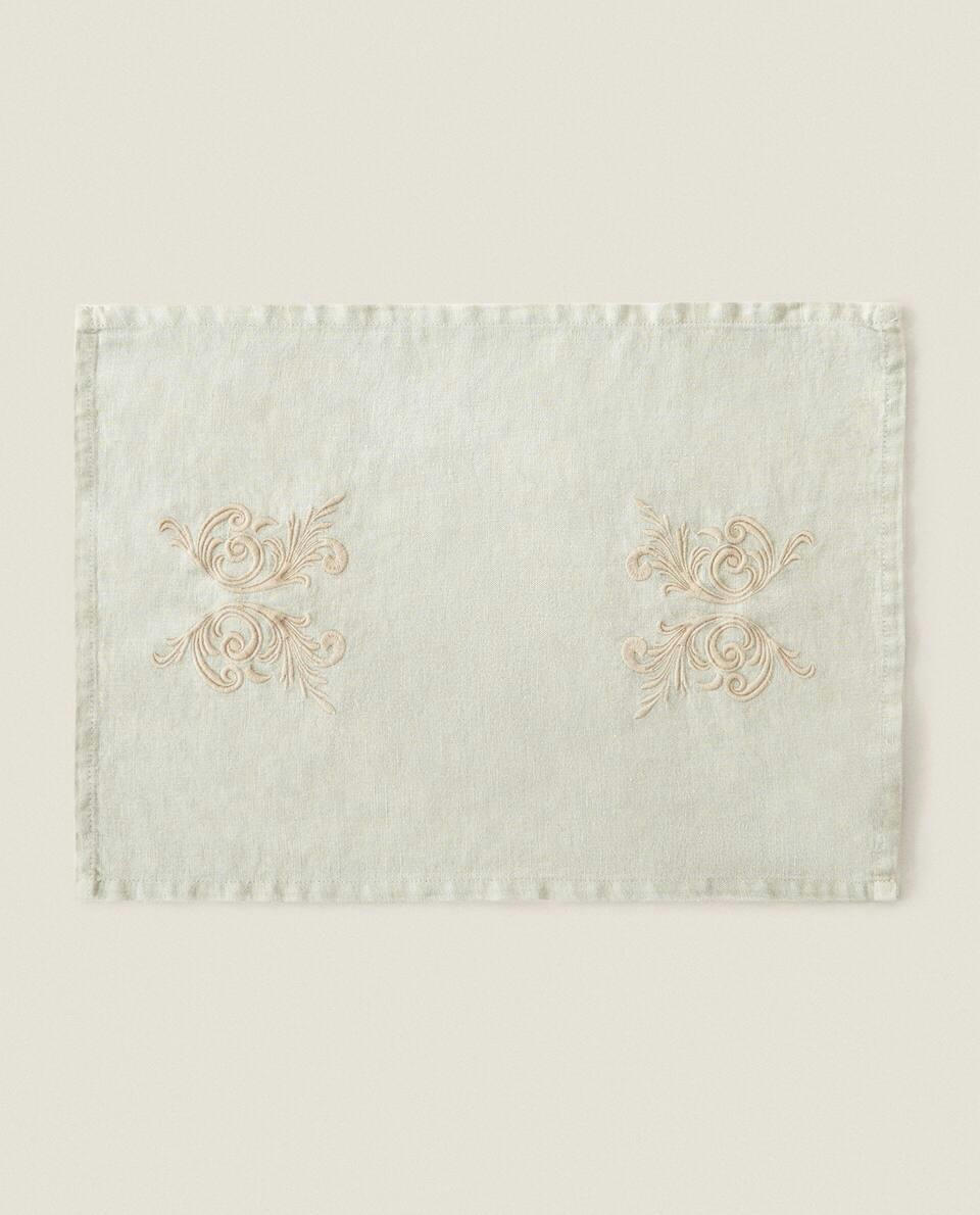 EMBROIDERED LINEN BLEND TABLECLOTH