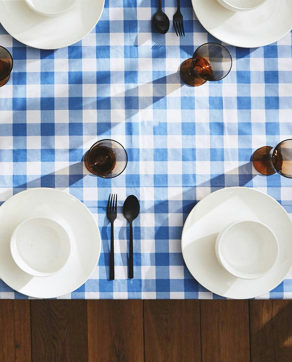 GINGHAM CHECK LINEN TABLECLOTH