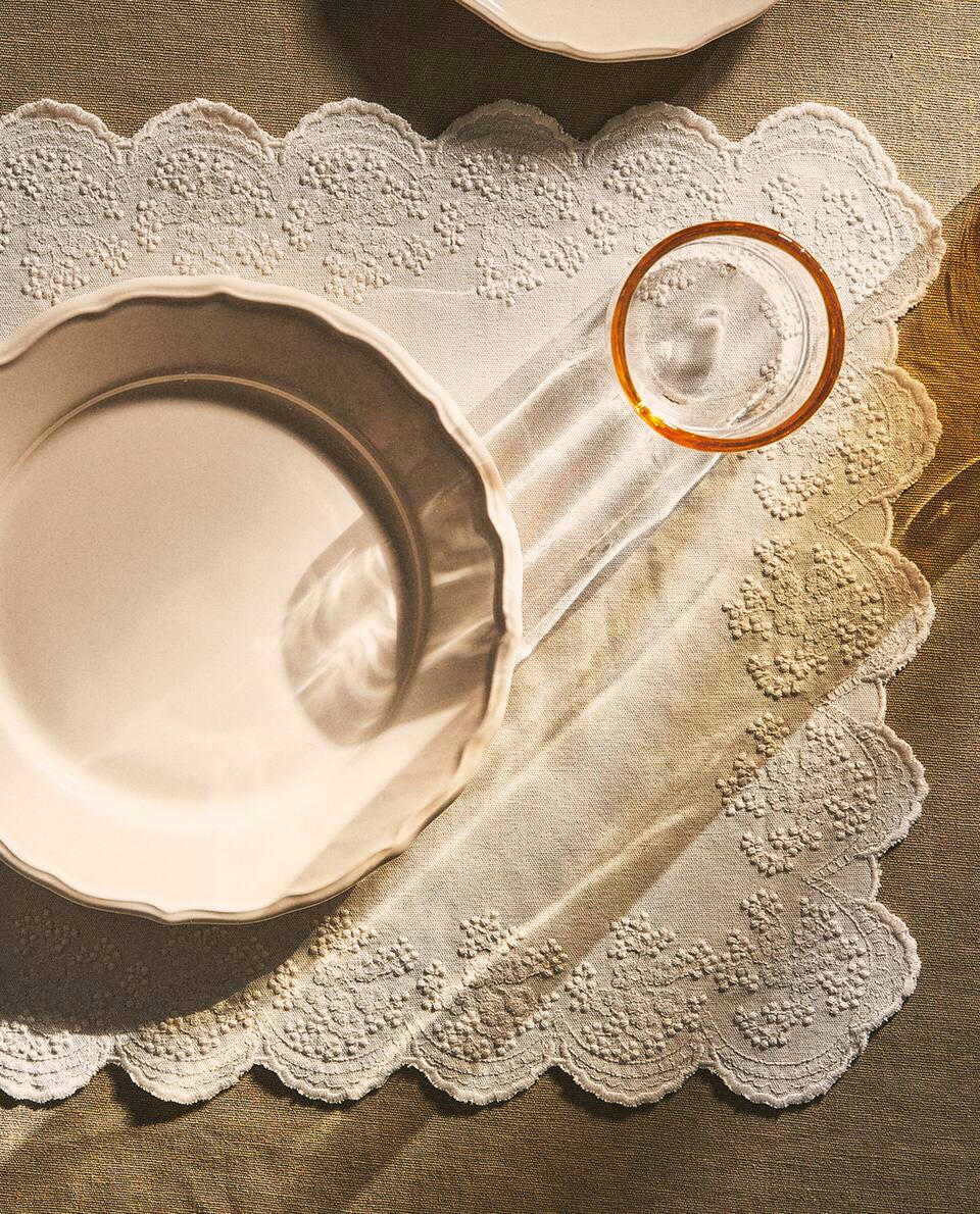 EMBROIDERED COTTON LINEN PLACEMAT