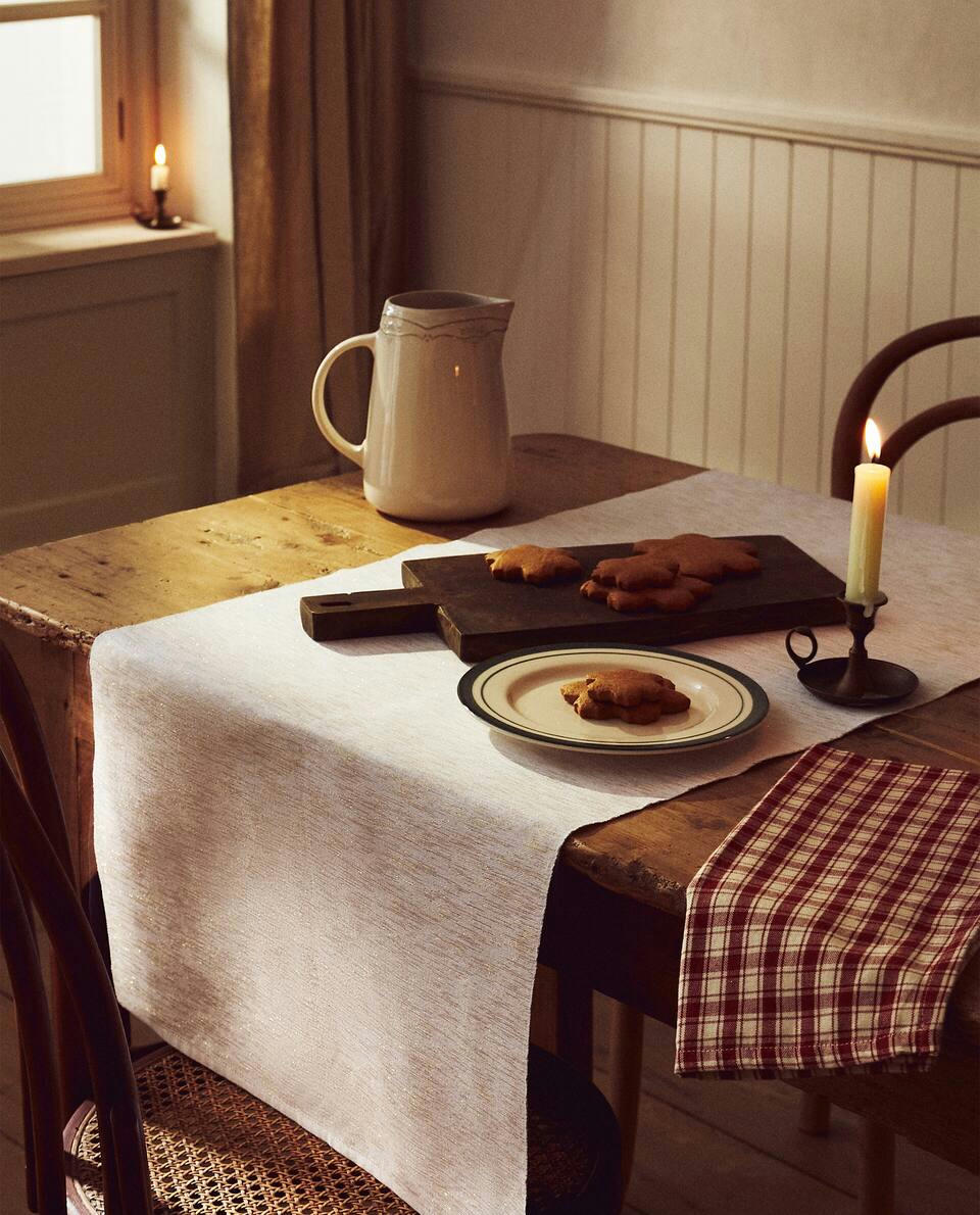 CHECKED COTTON TABLECLOTH WITH CHRISTMAS STRIPES